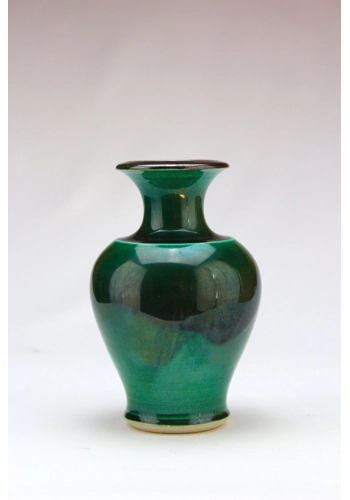 Small baluster vase green and lustre glaze 14cm tall. Made by contemporary British ceramicist Andrew Mason, born 1962,  a member of the Craft Potters Association.