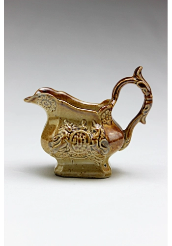 This jug has the royal crest on it and on the bottom a relief of a flower. Its a lovely little object sent to me by a long time collector who told me they had never come across another one like it, so I presume its quite a rare moulding.