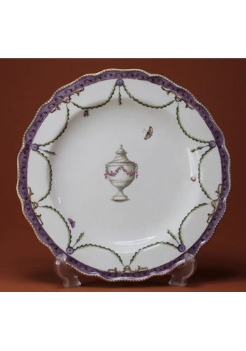 SOLD Chelsea-Derby Plate Decorated With a Purlple Edge, Swags and an Urn