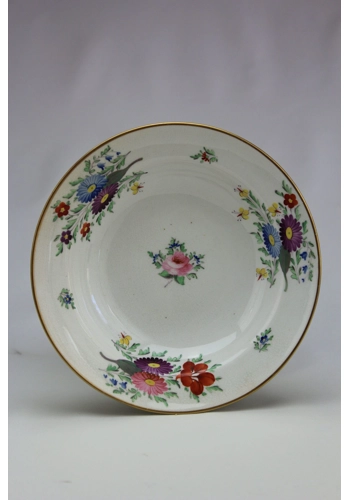 Derby soup plate decorated with flowers measuring just 18.7 cm in diameter.