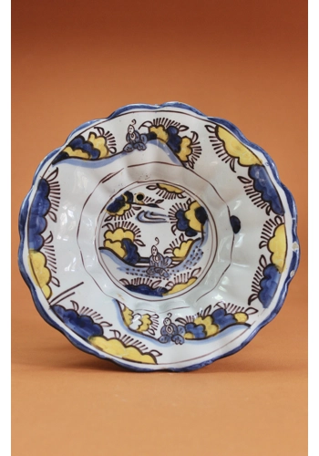 London Delftware Lobed Dish in Polychrome Blue and Yellow Late 17thc