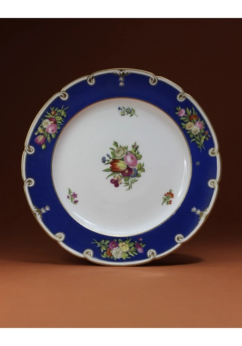 This plate dates from the early 19th century 1810-20. The blue is a semi-matt texture which gives it a deep rich colour to intensify the rich colours of the flowers.