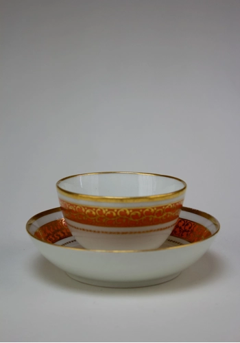 A Geogrian bowl and saucer of top quality, made from the unique Newhall hybrid hard paste recipe.