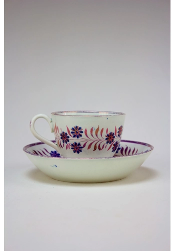 An unusual pearlware cup and saucer made at the beginning of the 19th century.
