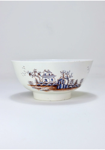 A very rare and important waste bowl, made and decorated in blue and red at the Worcester porcelain factory.